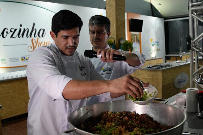Uma das atrações inovadoras foi a realização de Cozinha Show, onde chefs de cozinha prepararam pratos utilizando produtos da agricultura local. Esse evento teve como principal objetivo fortalecer a comercialização dos produtos de pequenos produtores e empreendedores locais, incentivando a inovação e o empreendedorismo. Durante as apresentações, os participantes puderam conhecer receitas preparadas com ingredientes frescos e regionais, o que aumentou a visibilidade dos produtos da região e incentivou o consumo de alimentos locais, além de estabelecer parcerias diretas com fornecedores.